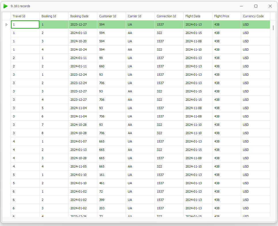 Select the Test button in the bottom-left corner to preview the current result based on your selected entity. This step is optional and may take some time, depending on the complexity of the data and server response time. Use it to verify that the entity returns the expected structure and values before continuing.